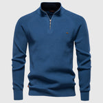 Luxusní svetr se zipem byl navržen pro muže, kteří si cení rafinovaného pohodlí s elegantním nádechem. Vyroben z vysoce kvalitní tkaniny, nabízí jemný a prodyšný pocit s přizpůsobeným střihem - ideální pro vrstvení, elegantní ležérní vzhled nebo pro každodenní uvolněné nošení.